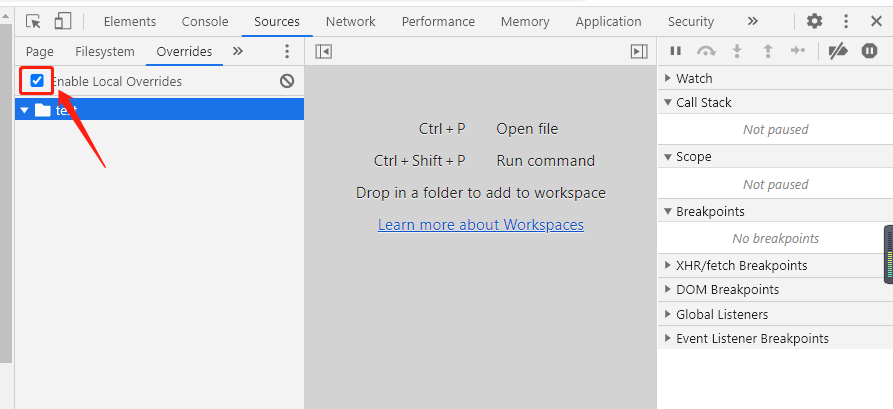 1.选中Sources-->Overrides-->+Select folder for overrides,添加一个页面存储目录。