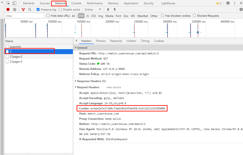 请求网页抓包,可以发现要抓的连接请求头中已经带有cookie了, 那肯定是在这之前生成的,但是前面的连接中又没有生成相应的cookie;