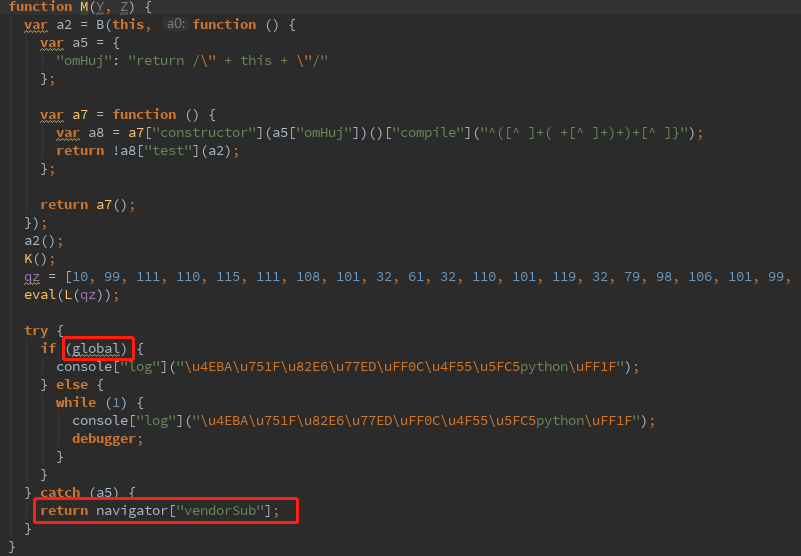 把navigator['vendorSub']拿到浏览器控制台中看一下,可以发现是一个空值, 如果这里是一个空值,结合m生成的地方看,还是比较符合预期的, 那这里尝试直接返回空值;