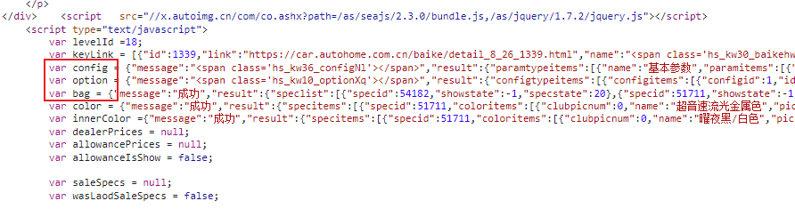 config变量中放的就是当前车型各版本的配置数据;