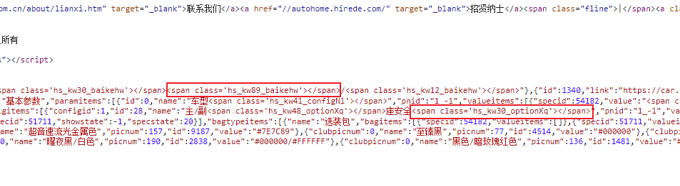 首先肯定是全局搜span标签的class属性hs_kw41_configNl,看看有没有对应的样式。 明显是搜不到的,然后我们把hs_kw41_configNl拆开搜一下,比如搜"_config"会搜到 拼接hs_kw41_configNl的类似代码: